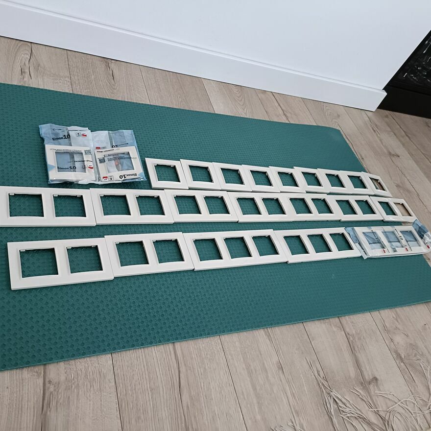 Sprzedam kompletny zestaw osprzętu elektrycznego Kontakt Simon 10 w kolorze kremowym / ecru.Osprzęt został zakupiony do mieszkania, jednak przed montażem zdecydowałem się wymienić całość na wersję czarną, dlatego zestaw pozostał nowy i nieużywany.